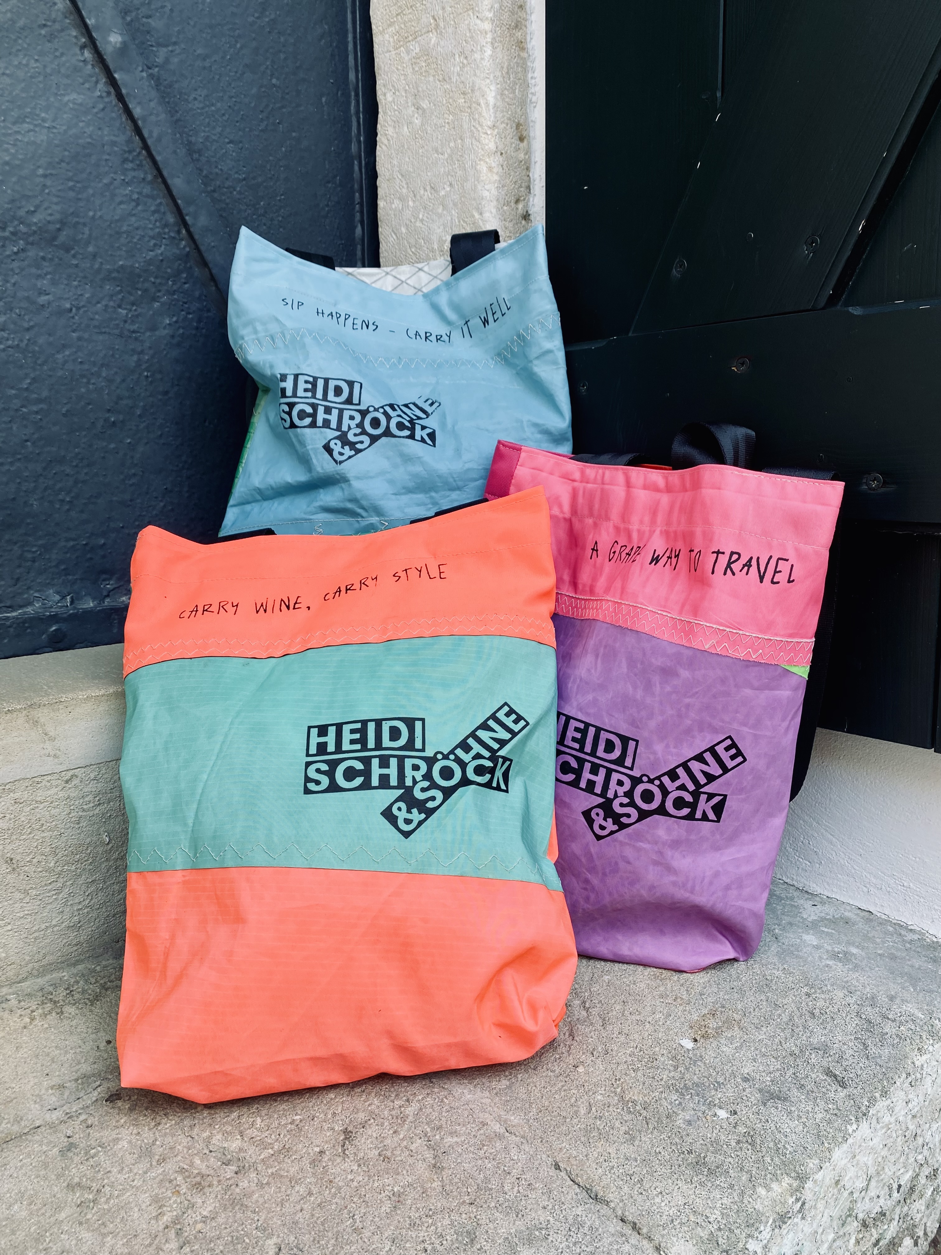 Each bag is one of a kind. It carries not only three bottles, but also the breeze, the sunshine and the light-hearted spirit of a summer’s day by the lake.